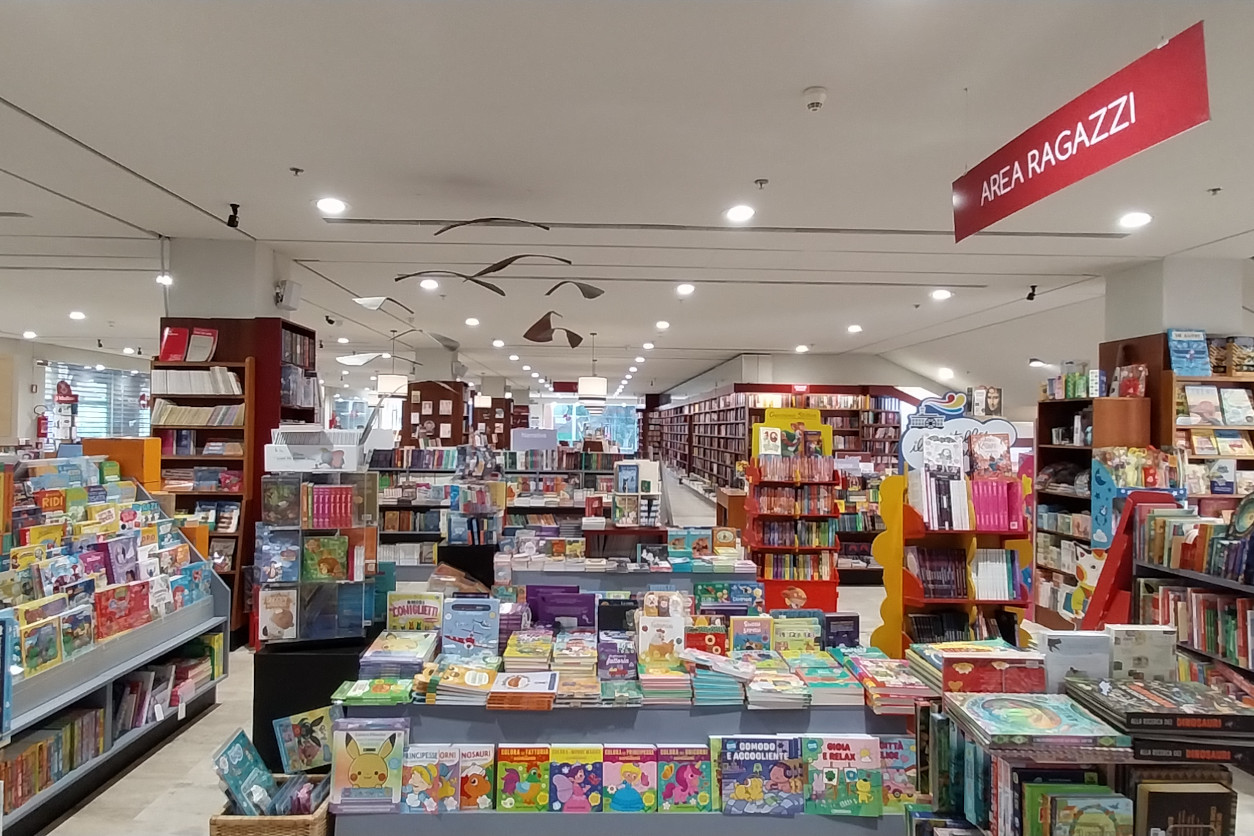 Un’ampia area della libreria è interamente dedicata a bambini e ragazzi. Scaffali colorati e accoglienti, tonalità pastello e spazi ben organizzati invitano a curiosare tra libri, giochi e oggetti pensati per stimolare fantasia e creatività. Un ambiente piacevole in cui ogni minisettore diventa un piccolo mondo da esplorare, tra storie, scoperte e avventure su misura per i più giovani lettori.